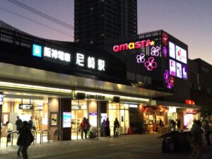 写真は研修後、阪神尼崎駅前で撮影したものです。