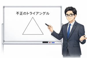 不正のトライアングルの要素は「動機・機会・正当化」。防止策強化は不可欠と言えます。