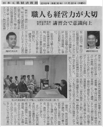 水戸・秋山工務店様(秋朋会様)主催の勉強会「学×人(まなびと)」登壇時の内容が日本工業経済新聞(茨城版)で紹介されました。